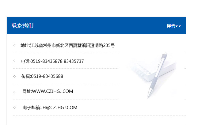 傳真:0519-83435688    郵編:213135    網址:WWW.czjhgj_com.dongfangtiancheng.com    電子郵箱:JH@czjhgj_com.dongfangtiancheng.com